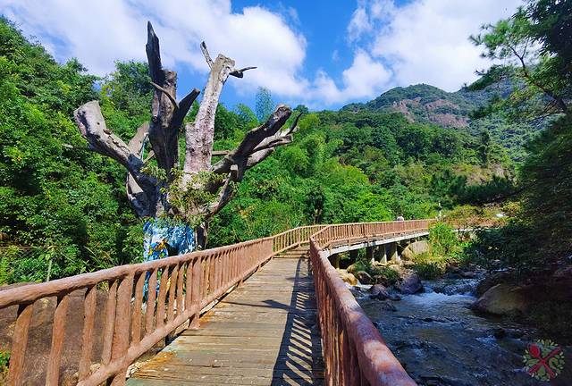 白水寨景区有28个景点,包括天南第一梯、寿龟潭、会仙桥、亲瀑台等景点,上山有两条路,木栈道景点多走久不会太累,另一条石梯比较陡峭,适合体力好的年轻人。