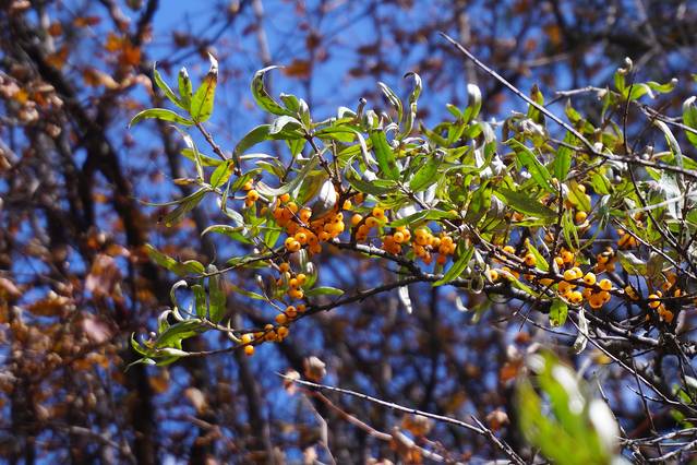 沙棘,我心心念念要带回家榨果汁的沙棘,千年沙棘林结果被围起来了。尝了一口,太酸了,放弃了这个念头