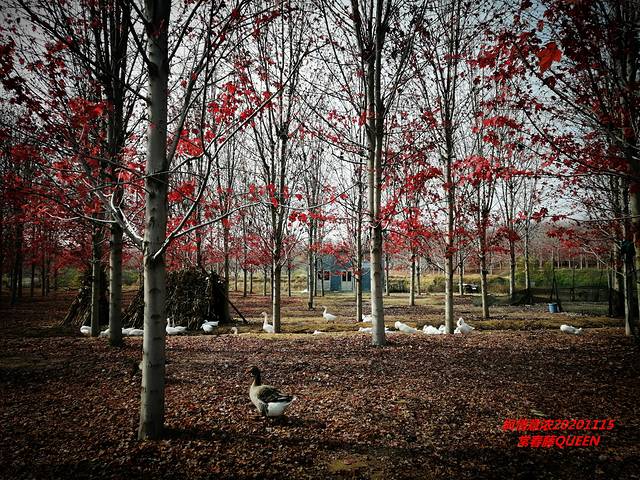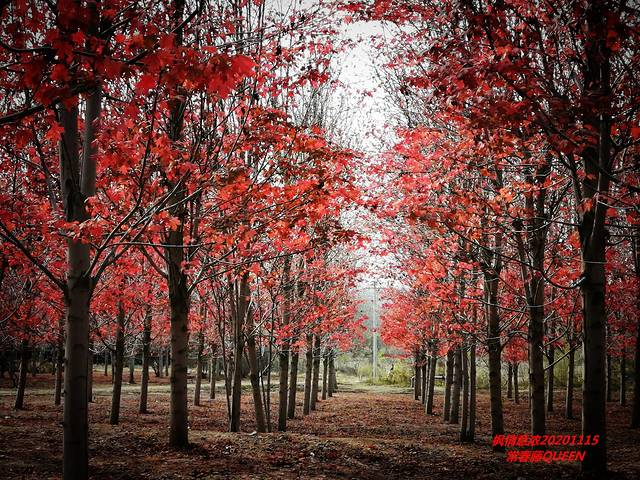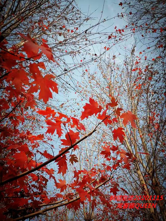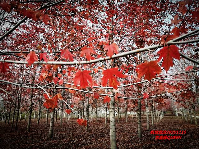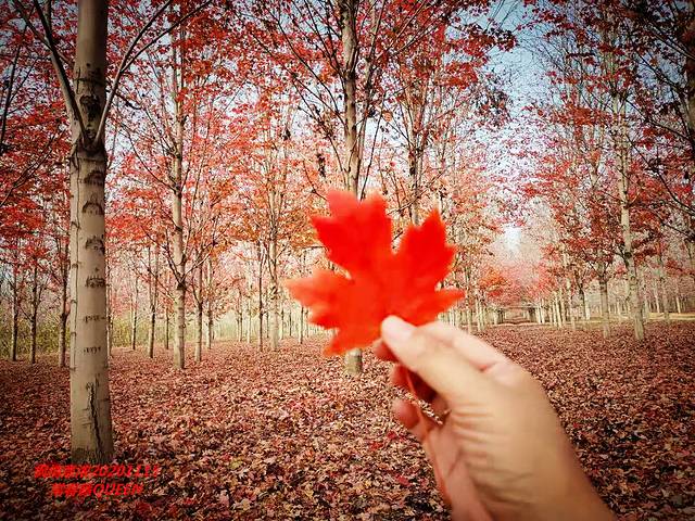 无意中发现了一个周末悠闲的好去处,黄岛张家楼千亩枫树林。虽然来时,枫叶最佳赏时有点晚,十月下旬应该最好。但是在游玩的过程中却是满心的欢喜。风和日丽,秋高气爽,穿行于林中,踩着厚厚的落叶,脚下发出沙沙沙地响声。。。放眼望去,满眼火红,如同油画般。秋风微拂,火红的枫叶随风摇曳,有的随风起舞,有的纷飞飘落。感慨万千,人生百态,难不成还不如一枚小小的枫叶,逆风而行,果断勇敢,涅槃重生。