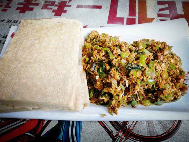 忘记菜名了,是店家特色菜,卷煎饼吃,非常好吃。