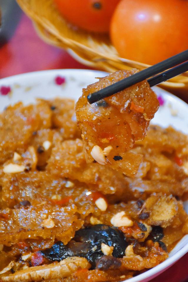 酸辣猪皮,弹性十足的猪皮加上永春老醋的香味,酸辣的口感,简直好吃到爆。