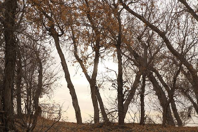 橘黄是柏油大道守卫者们的武装色,井然,霸气又诱惑。惊异,这些在三季中熟视无睹的树木竟是胡杨!可见我活的粗糙。