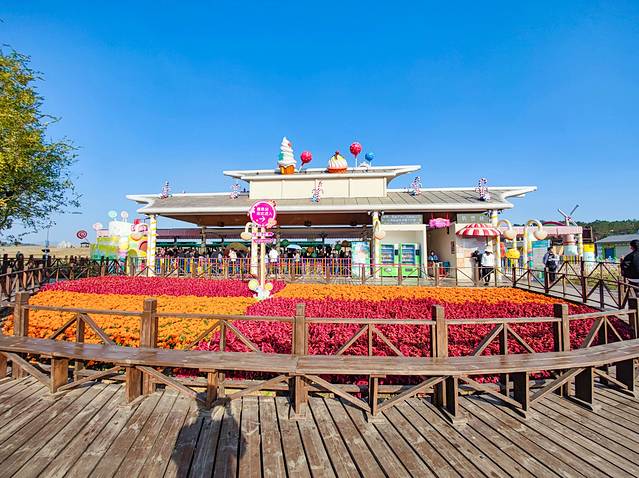 一到木兰草原就迫不及待地向小火车的起点——糖果镇走去。从景区入口到糖果镇很近,大概五分钟的路程。与其说糖果镇梦幻得像童话世界,倒不如说糖果镇就是现实中的童话。鲜花、彩虹、糖果、彩色房子……童话里的元素这里都有。站在可可爱爱的站台等待小火车的时候,我的心简直要萌化了。在这么浪漫的地方,我才不要故作矜持呢,就暂且在木兰草原做一天小朋友吧!