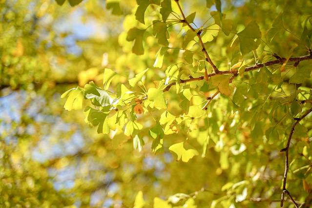 叶子由起初的黄中带绿,变成了黄绿色,到了深秋,满树就变成了金黄色。