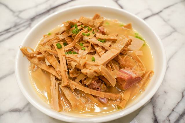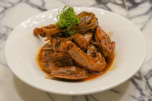 酒店菜品不多,但每道菜都具有建德特色,如干笋烧肉色泽金黄,肥而不腻,酱鸭酱汁匀称润泽,看着就有食欲。