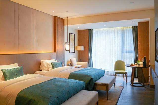 新安雷迪森度假酒店,依新安江而建,背靠南山公园,一边是南山山麓,一边是新安江景,不时传来不远处新安江电站的滔滔江水声,让人有深居幽静山水之感。