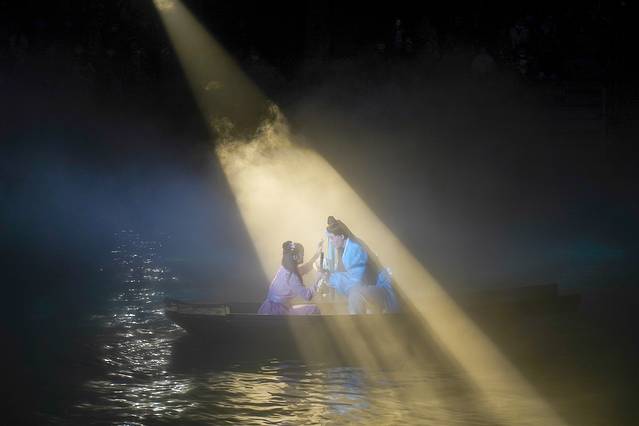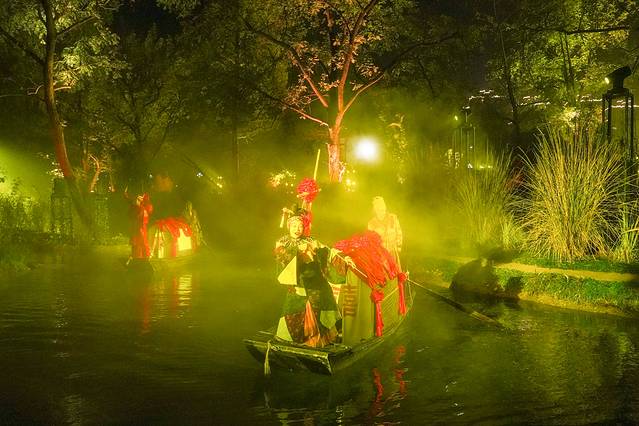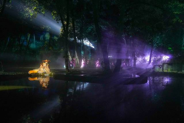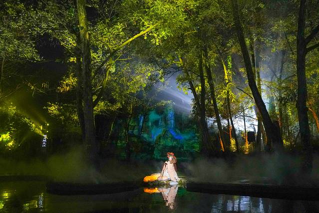 《江清月近人》是一个设置于建德月亮岛上的大型沉浸式实景演出项目,演出源于唐代诗人孟浩然著名的宿建德江诗句。通过环岛观看的方式行进的沉浸式观演,由“江、清、月、近、人”五个演区构成一台串珠分布而又相互关联的完整实景演出。