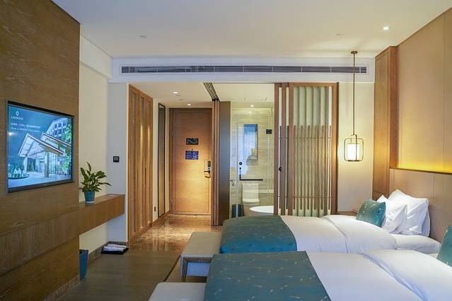 吃饱喝足便是要去周公处下下围棋,房间的好坏直接影响到休眠质量,新安雷迪森度假酒店的房间风格跟它整体的建筑样式浑然一体的,空间中多采用鹅黄的暖色来营造空间的温馨感,似要去印证它那句“宾至如归”的话。