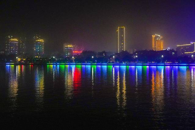 来到游船码头,天色已暗,乘坐游船前往月亮岛,一路上可欣赏到建德美轮美奂的夜景,微风清凉,享受着新安江独特的魅力。