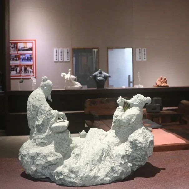 游览场馆欣赏雕艺作品之余