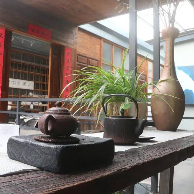 置有许多茶桌欢迎四方宾朋来此免费饮茶