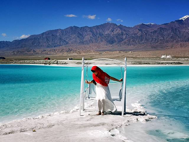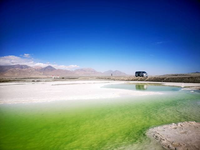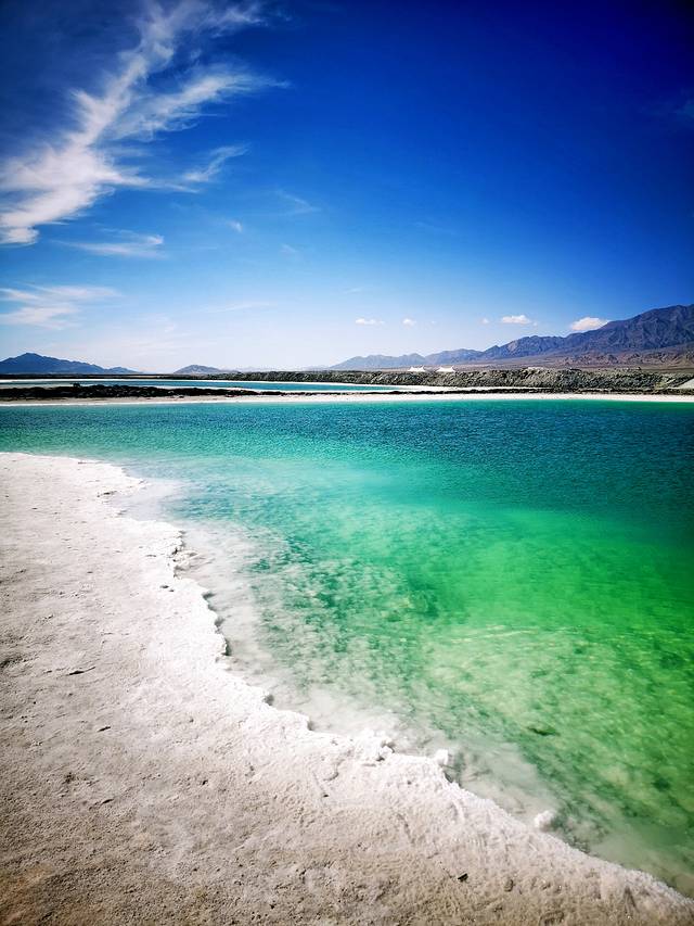 来到这里,会让你觉得自己是上帝宠儿的感觉。翠绿清澈的湖水,白色纯洁的盐滩,不得不感叹大自然的能工巧匠,能把这样一颗翡翠镶嵌在大柴旦上。