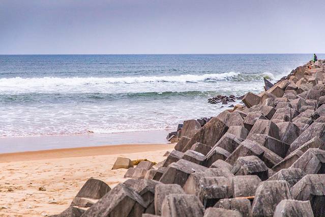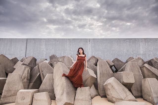 虽然 灯塔 不能靠近了,但是到了这里还是要留下到此一游的照片的。海边的防波堤也算是很酷的题材,配着台风到来前犀利的云,来拍得酷一点吧。
