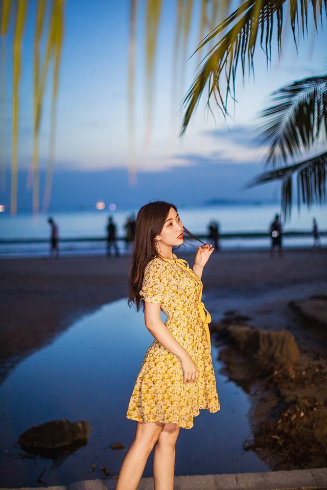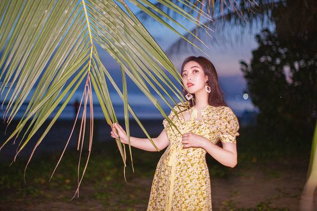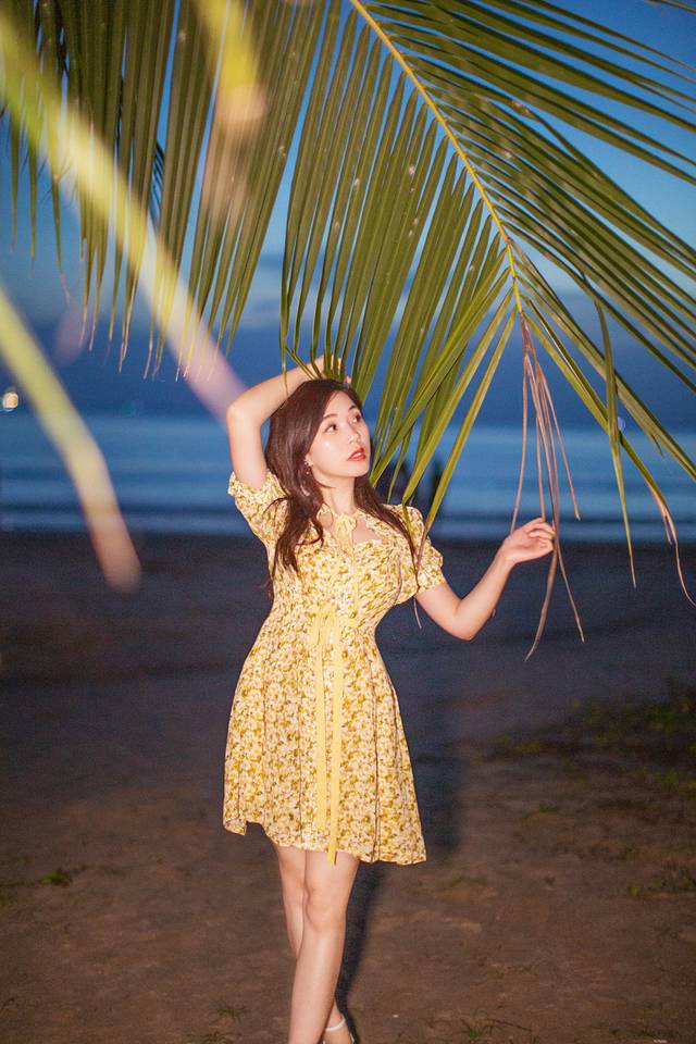 从椰梦长廊一直溜达到 三亚 湾,本来是想等一场日落,结果台风天之下的天空并不会给我们一个多美丽的日落,不如等到天空暗下来后拍一组特别的蓝色人像。