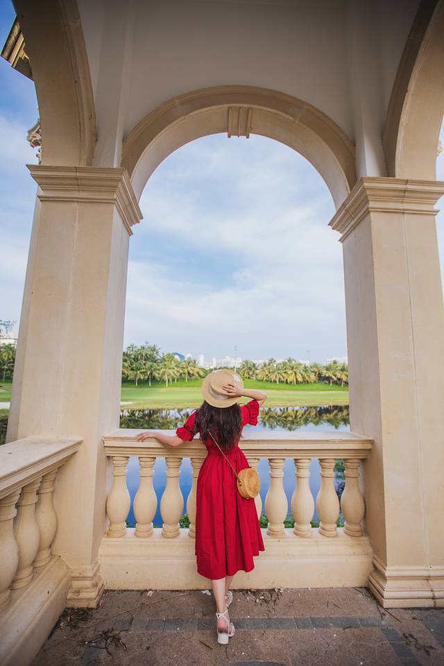 门口的两个圆圆的台阶是最佳拍照角度,可以拍到cocobay的全貌,除了可以普通地平视拍照外,还可以让摄影师跑到楼顶,从上往下拍,视角更加独特。