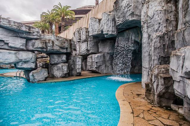 从普通的泳池出发,游过一片水道,会进入一个人造岩洞,这真是我见过最有特色的游泳池之一。