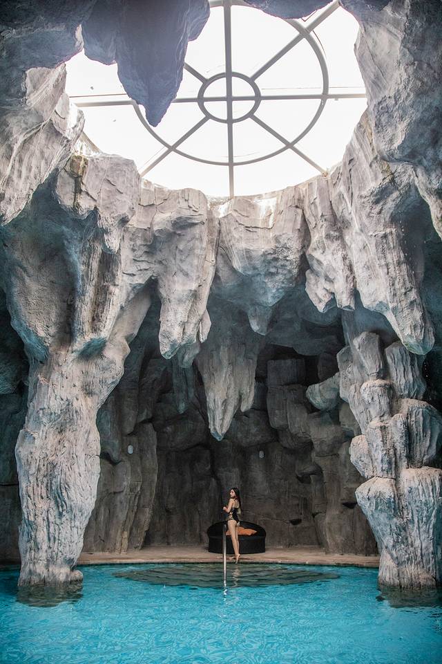 过了岩洞中心,另一边的泳池也是岩洞风格的,总的来说真的是非常有特色的泳池,专门为了这个岩洞泳池来住一次这个酒店完全不为过。