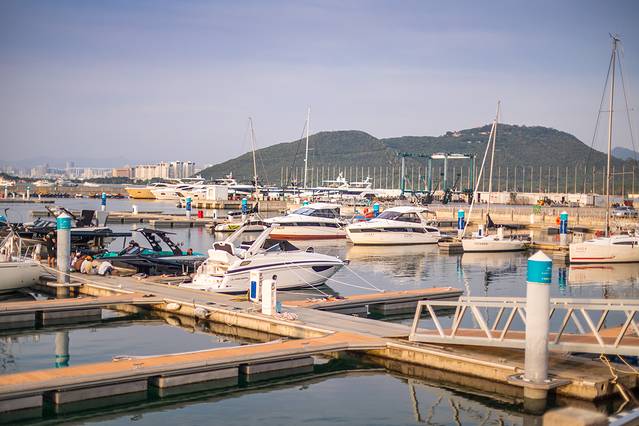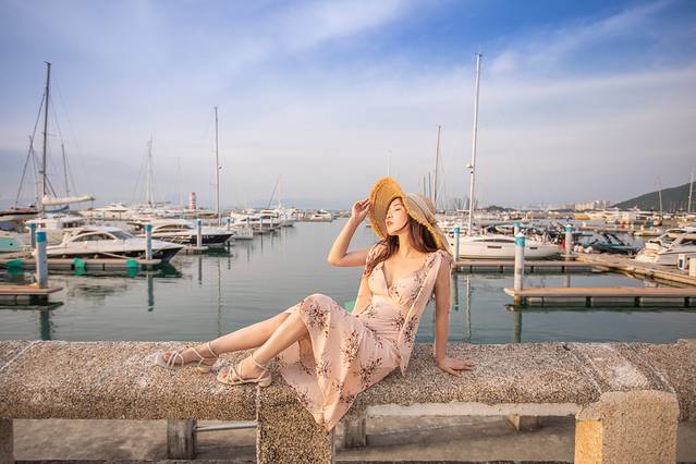 拍完了吉庆广场,对面就是半山半岛的帆船港,赶紧换一身衣服继续来拍照啦~