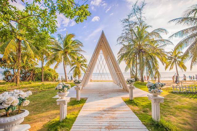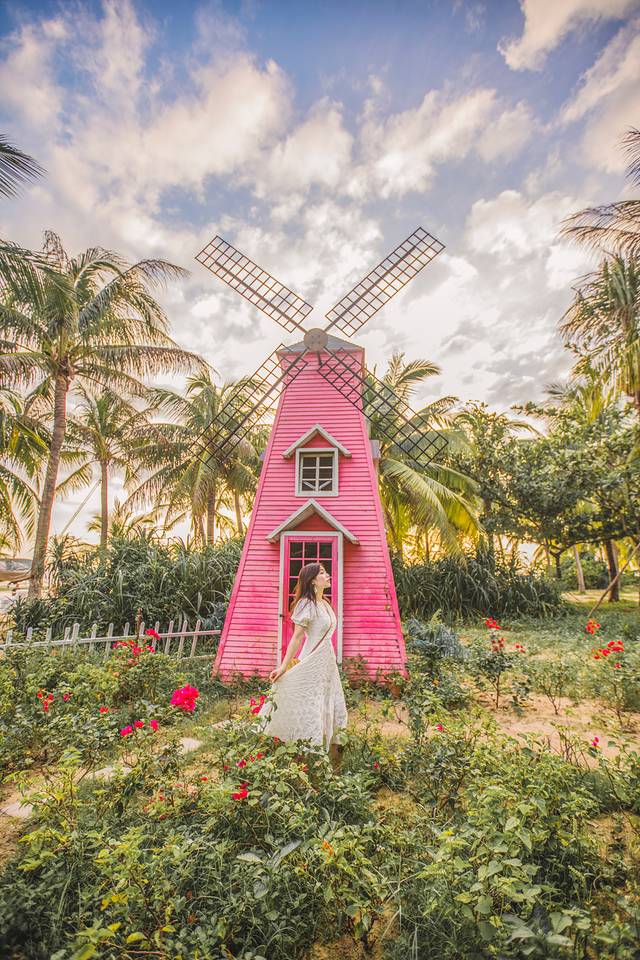 这片婚纱基地有白色的小教堂、 巴厘岛 风格的鸟巢、海边小车车、ins风仙人掌、 荷兰 风格的风车、甚至还有直升飞机你敢信,反正在椰子树的海边,可以一次get各种风格的大片,试问谁能不爱呢?