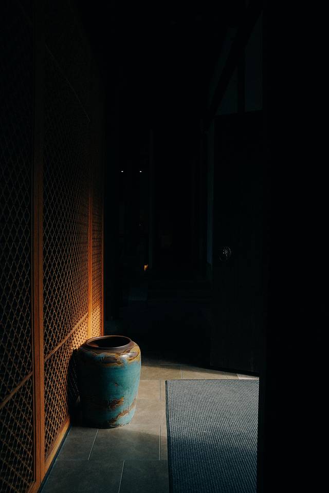 先来看看我们这间老宅子,放到旧时,也算是大户人家吧。穿过第一扇门是一个入户小院子,再穿过一扇门才正式进入房间。大概是为了营造气氛,房间里的灯光很昏暗,真的有一种回到旧时的感觉。