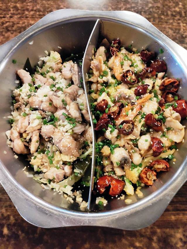 这家店里面最有名的就是鱼。我看了下,来吃饭的大多数都会点鱼火锅。有酸汤鱼,酸辣鱼,烤鱼,脆皮鱼等等。我们是点的鸳鸯锅。团购的套餐里面也有一些蔬菜。4个人,点4人套餐,足够吃了。味道也超级好。