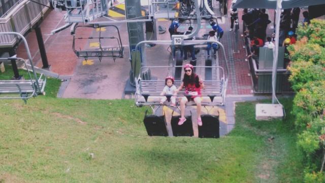 还有一个比较刺激的项目推荐去玩一下,其实一点都不危险。这个是高空滑坡,据说只有日本和新加坡有,85cm以上的小朋友就可以和大人一起玩,一套票,可以滑两次,坐两次高空缆车。因为没有购买他们的抓拍照片只能给看下他们广告了。