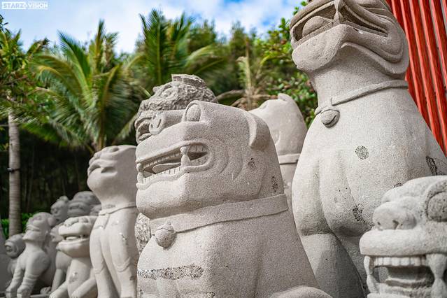 从德萨斯小镇沿路行至海边你应该会发现有不少有趣的石像——石狗。“石狗”其实为雷州古时候民间的信仰之一,作为一方的“守护神”,安放在人们经常出入的必经之处,同理,在鼎龙湾海边安放如此众多石狗像除了起到守护作用外,最重要的是将湛江本地文化传播出去,将这一形态各异不尽相同的“石狗”文化让更多游客认识。