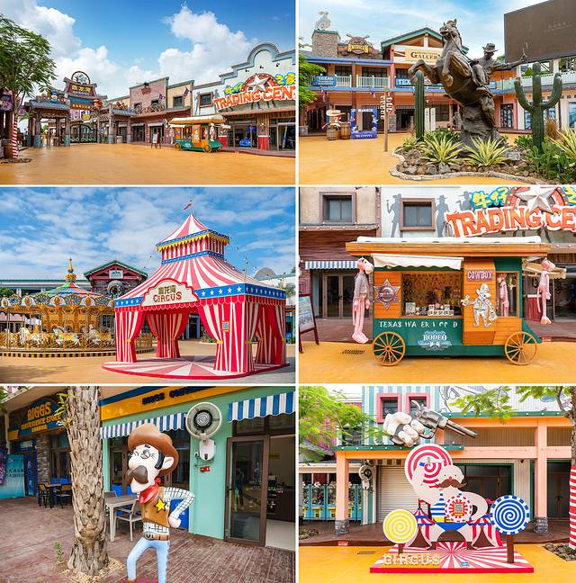 德萨斯牛仔小镇也是一个极为有趣的地方。它同样是以美国德克萨斯州的风格设计建造,原汁复刻著名的StockYards 小镇,从整体风格到建筑细节,极大限度地体现美国西部的异域风情和牛仔文化。并且在小镇内的嘉年华街,提供约150项牛仔主题的动作、冒险、射击、VR等嘉年华游戏项目,无论是大朋友还是小朋友都尤为适合。