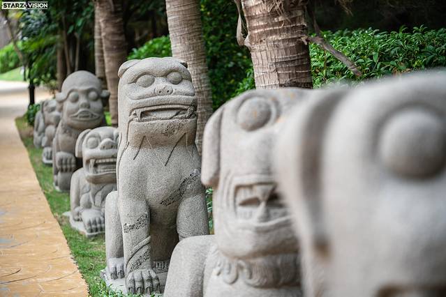 位于情人沙滩风情街上的石狗剧场,舞台的背景为一望无际的南海,舞台背后站立着一排雷州文化特色的石狗。每天特定时间,在这里都会上演各种异域风情的歌舞表演。平时旅游也不容易能遇到这种体验,所以既然来到鼎龙湾,就一定要来感受一下这充满亚热带风情舞蹈的热情与豪放!