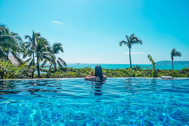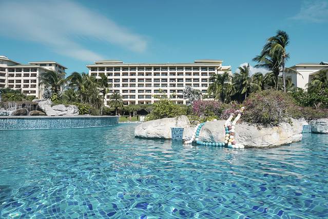 酒店空间很大,设有室内和室外游泳池、儿童泳池、温水池,最喜欢的就是二区前面的无边泳池了。午后的时间,换上一身喜欢的泳衣,泡在泳池里,看波光粼粼的大海,这样治愈系的时光,我能永恒心动。