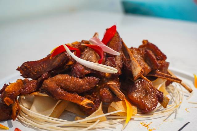 孜然海南东山羊小排:海南有名的东山羊真的不能错过,经过厨师的特色秘制,外脆里嫩,口感很好,也没有很多人害怕的羊膻味。