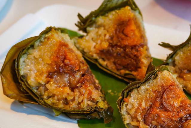 定安黑猪蛋黄粽子:糯米配上咸香的蛋黄,加上当地的黑猪肉,香糯入口,肥而不腻,值得一试。