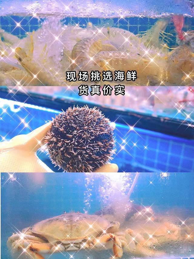 门口一侧摆满了装着各种海鲜的水箱,海鲜都是现场挑选现场称重再烹制的,货真价实。