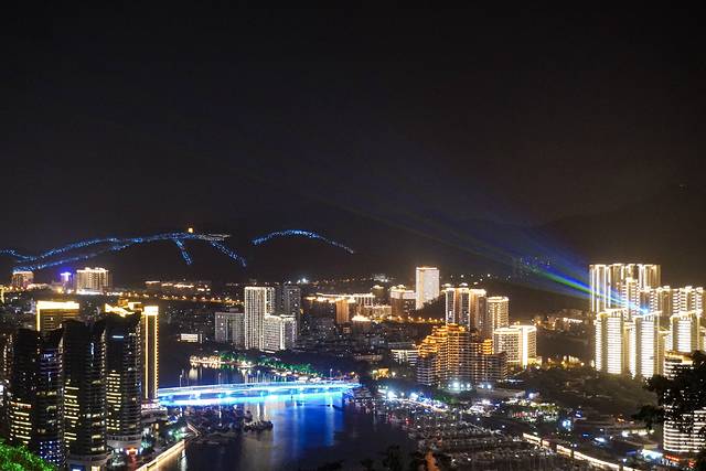 从三亚湾吃完晚饭后,我们直接打车来到鹿回头景区。来到的时候已经是晚上9点多了,日落是看不上了,那就看一次夜幕下的三亚吧。