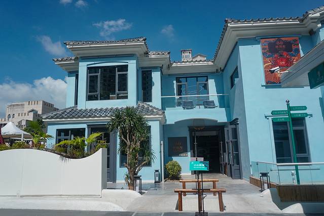 作为新开不久的海角院子,很有设计感,整体环境看起来都很舒服。锵锵蟹位于海角院子的正面位置,一进来看到整栋浅蓝色的外墙的房子便是了。淡淡的蓝色看起来有一种清新的感觉,室内绿色的主色调,红、黄、白等配色,各种高档的餐具,又让这里多了一份优雅。