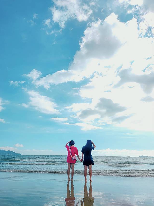 我们沿着海边一边闲聊着一边往前走,也不知道终点在哪。看着一望无际的大海,踏着浪,听着海浪拍打的声音,海风吹过脸颊,是一种凉爽的惬意。
