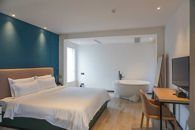 我们两个人选择了一间标间入住,房间空间不算很大,但冰箱、洗衣机、吹风机等所需物品一应俱全,舒适的床上用品也能保障我们有一个舒适的睡眠状态。
