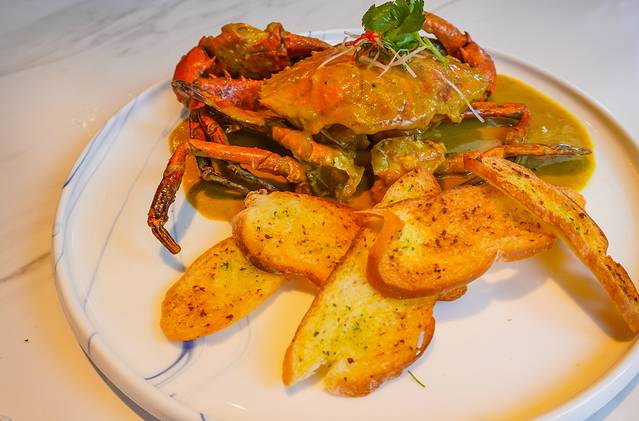 店里的蟹分为青蟹、膏蟹、珍宝蟹,可以选择咖哩、胡椒、辣椒等口味,我们根据自己的口味选择了咖喱炒蟹。蟹肉很鲜甜,香味十足,口感很好,对于爱吃蟹的我来说可算是幸福感满满的。
