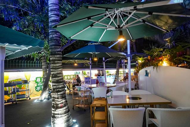 餐厅是以外场席位为主,在这样充满雨林气息的环境下用餐,听着潺潺流水声,想想也是一种惬意吧!