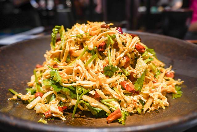 老妈拌菜:里面有豆腐皮、花生、包菜、粉条等,吃起来口感清爽,特别开胃。