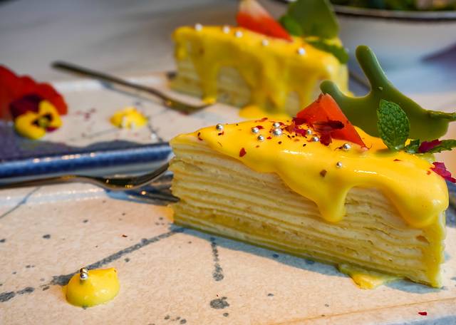 招牌榴莲千层蛋糕:光是精致的摆盘就吸引了我,加上我喜欢吃榴莲,浓郁的榴莲香味,甜而不腻,喜欢!