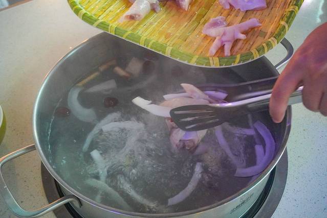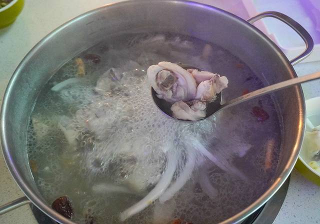 店里的鸡来自正宗的海南文昌鸡,汤底煮开后,将鸡肉倒下煮3分钟就可以吃了(服务员会调好闹钟,不会错过最佳食用时间),这时候的鸡肉鲜嫩,口感很爽。