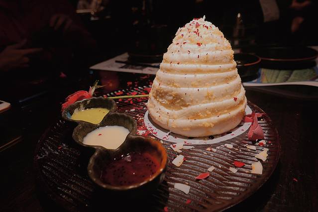 吃之前会有手拍玫瑰的环节,软糯还带着椰香还不错的主食