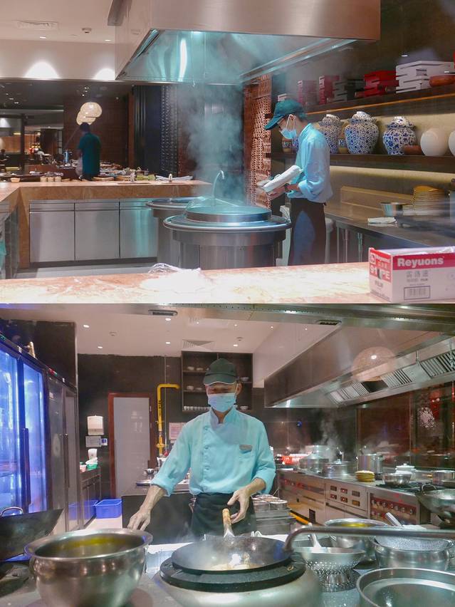 开放式的厨房可以清楚的看到菜品制作流程, 淮阳 菜、川湘、火锅、面档