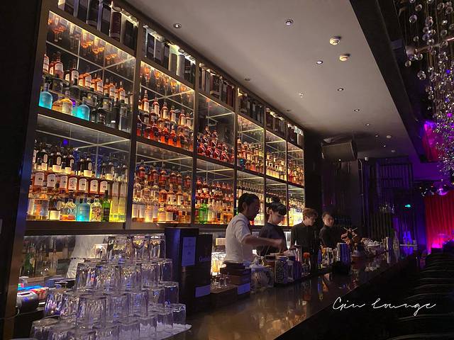 酒吧的设计很有感觉✨,外面看是一整面用酒瓶堆出来的墙面