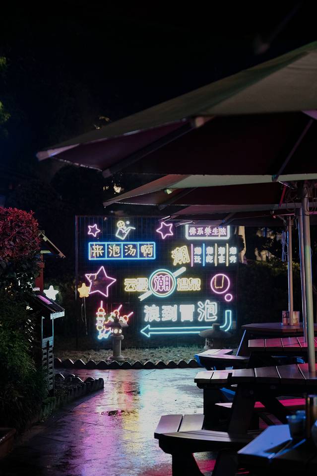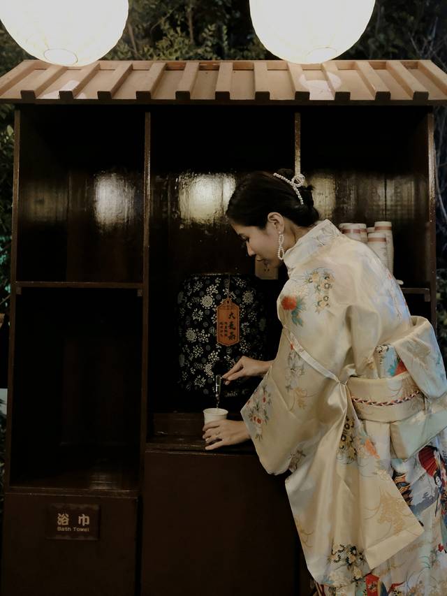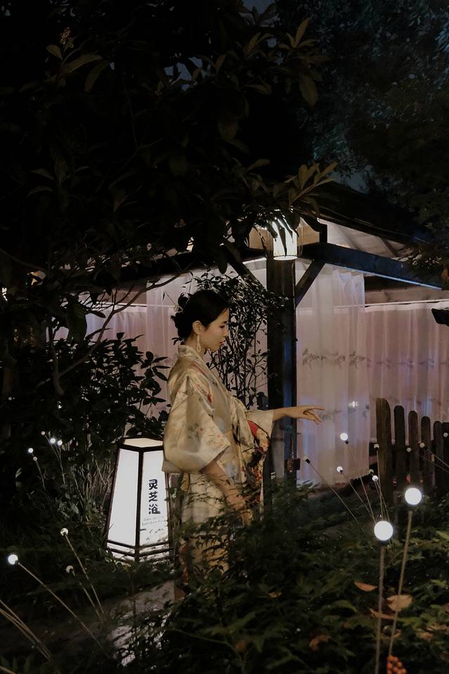 晚上灯光亮起,闪闪硕硕特别适合拍摄。周边的木屋建设和小陈列,也彰显着东京的味道。一组拍下来,就是足不出户的东京汤池没错了。