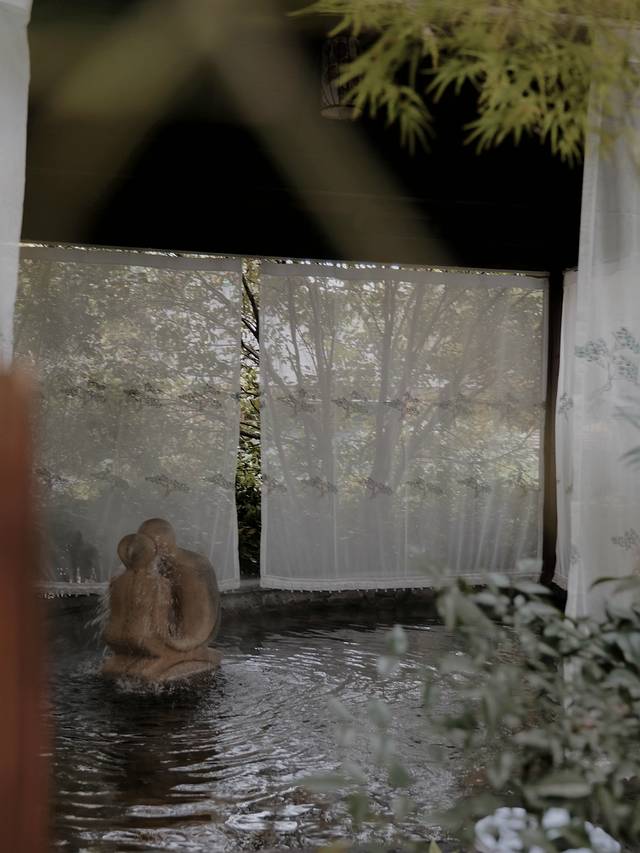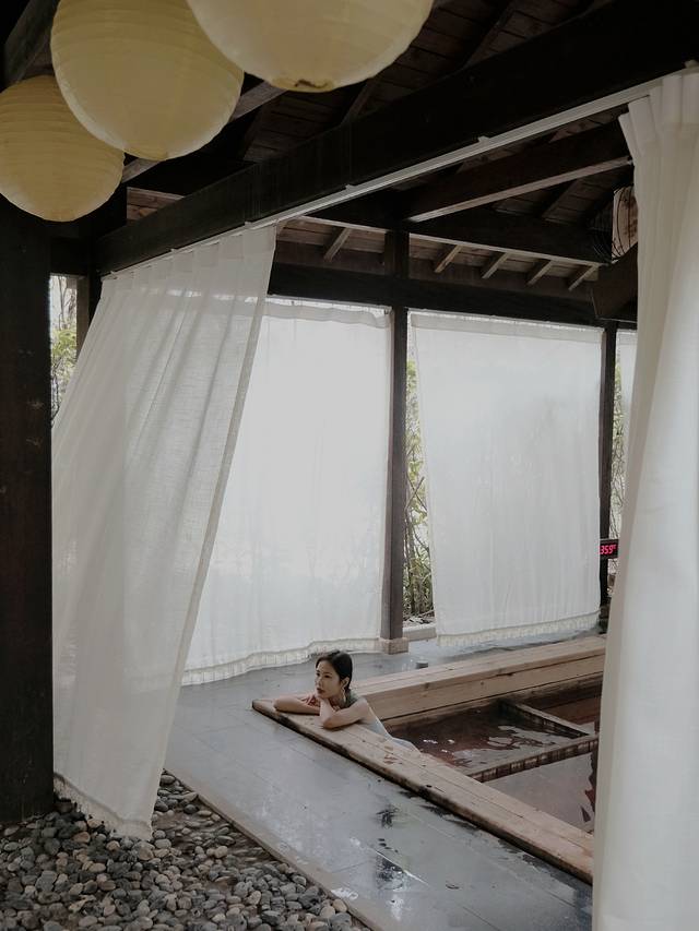 云曼的汤池设计,主要偏向日式。很多池子两边隔着白纱,进入丛林就像穿越到了京东。