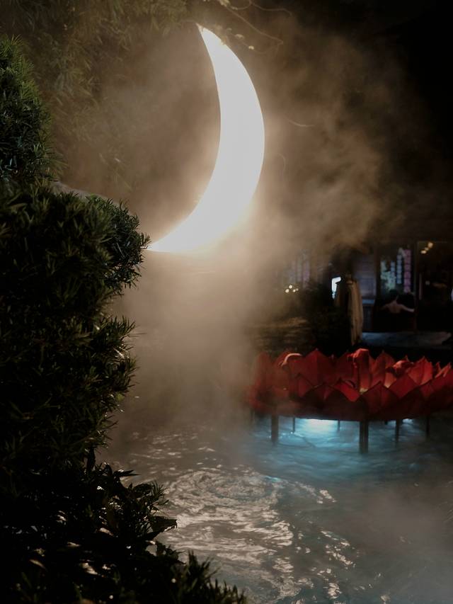 吃饱喝足后身体就特别容易满足,欢腾在池子里的同时看各种在表演秀,会有一种穿越感,在温泉池里也能这样躁动一番,没有比这更潮的了。