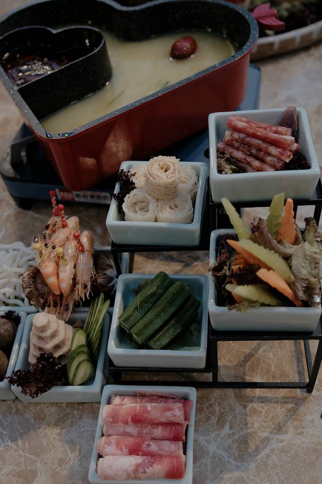 大家都知道从温暖的温泉池里出来,新陈代谢的加快让身体觉得非常饥饿,因此我们一家人在浑身的温暖酥软还未来得及褪去的时候,便就开始吃起了热火朝天的火锅,真是没有什么比温泉后大快朵颐一顿火锅来得更令人满足的了。我们吃的是泰式爱心锅,菜品都非常新鲜,热辣的毛肚,弹嫩的牛肉,丰富的菌菇,真是味蕾大满贯了。