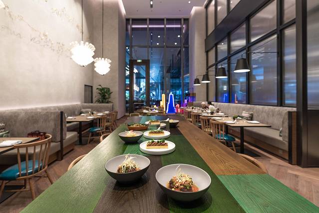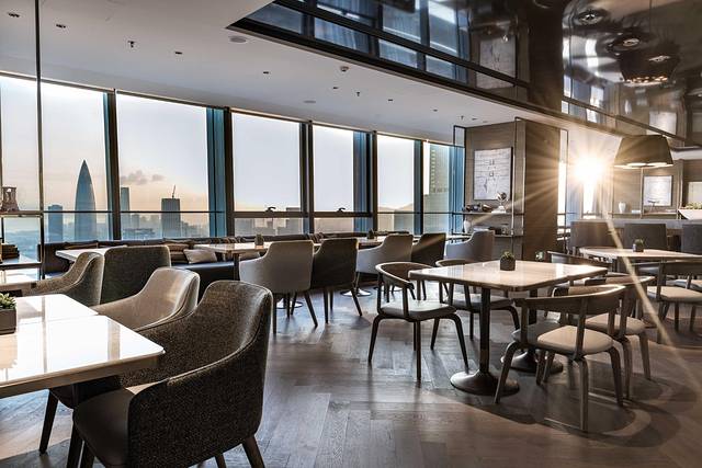 一早醒来,迎接我的是位于酒店57层的“燃”全日餐厅,不仅仅是窗明几净,这里好看得不像个餐厅,而是一个艺术展览会,没有吵闹嘈杂,可以舒舒服服地坐在落地窗边,一边享用美味的早餐,一边欣赏窗外美景,惬意的开启新的一天。